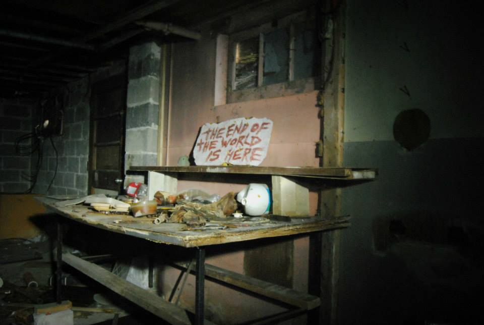 We arrived in the early October afternoon in a mix of sun and clouds, and we were having a grand old time poking around, taking photos, posing for “ghostly” long exposure shots, and generally having a great time. We were clearly not the first people to explore the hotel, as there was plentiful graffiti on the walls and a fun surprise left for us in the basement. “The end of the world is here”, but it came across more cool and fun than creepy.