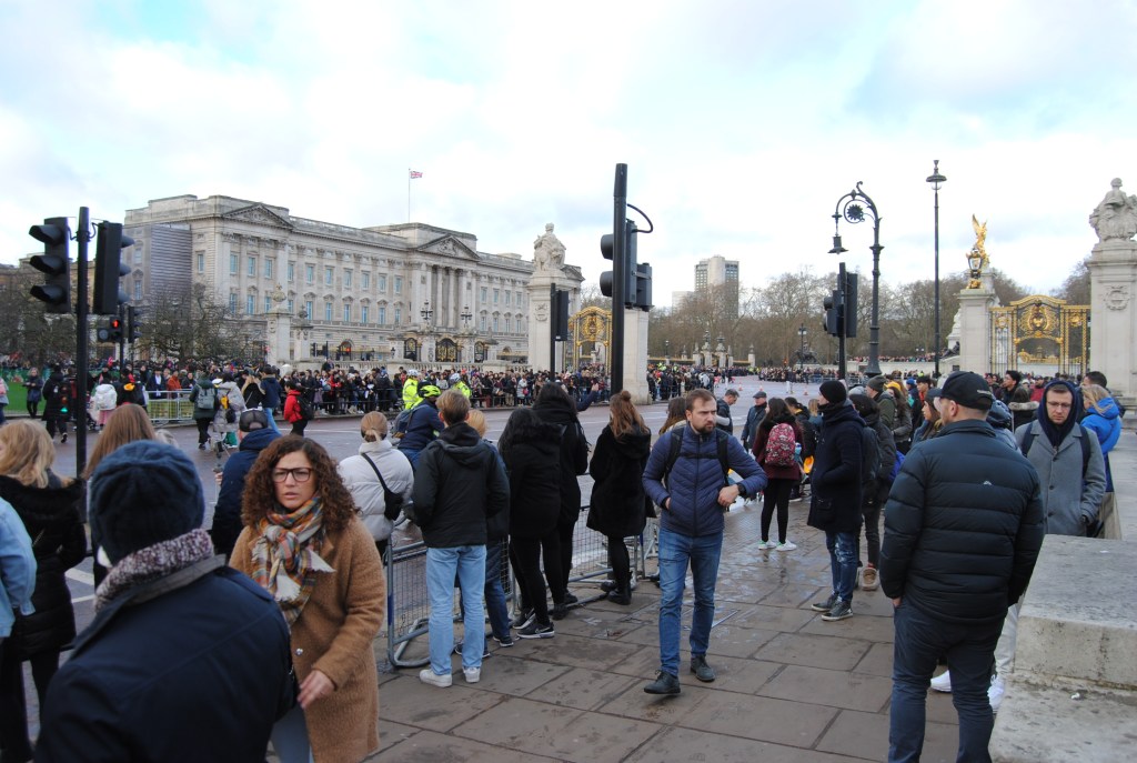 We started by arriving at Buckingham Palace at a very un-optimal time: the middle of a special Sunday changing of the guard. While I am a sucker for a good marching band and mounted police, it was next to impossible to get a good look at the Palace, much less a photo. This is a recurring trend for every big tourist attraction: there are tourists everywhere, even in early January off-season.