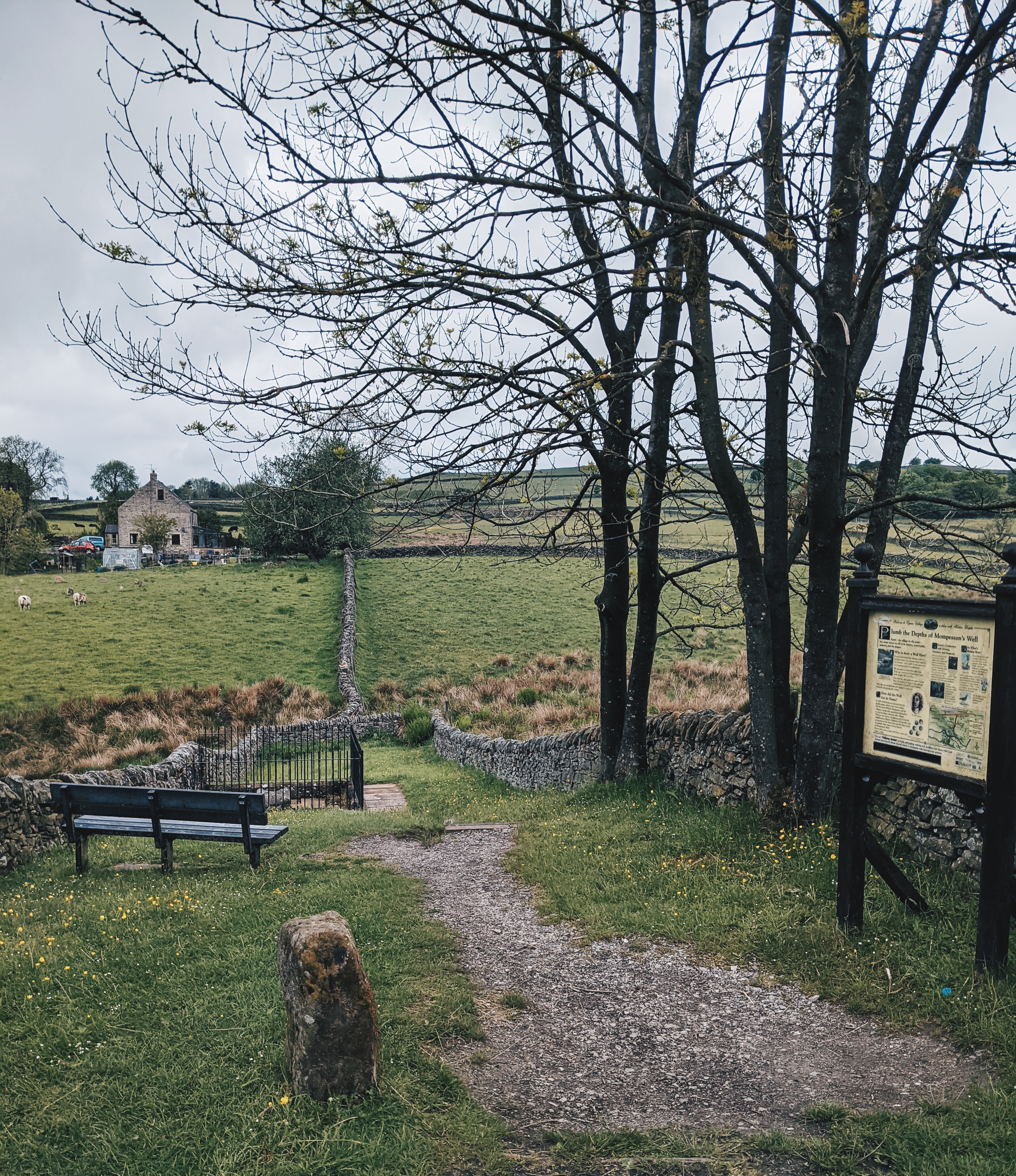 Eyam is a village of less than 1000 people nestled in the Peak District, about a 45-minute drive from Sheffield. It’s exactly what you’d think of when you imagine a historic English village: old stone houses, narrow streets, a parish church. The village also acts as something of a trailhead for public paths and walking trails in the Peaks.